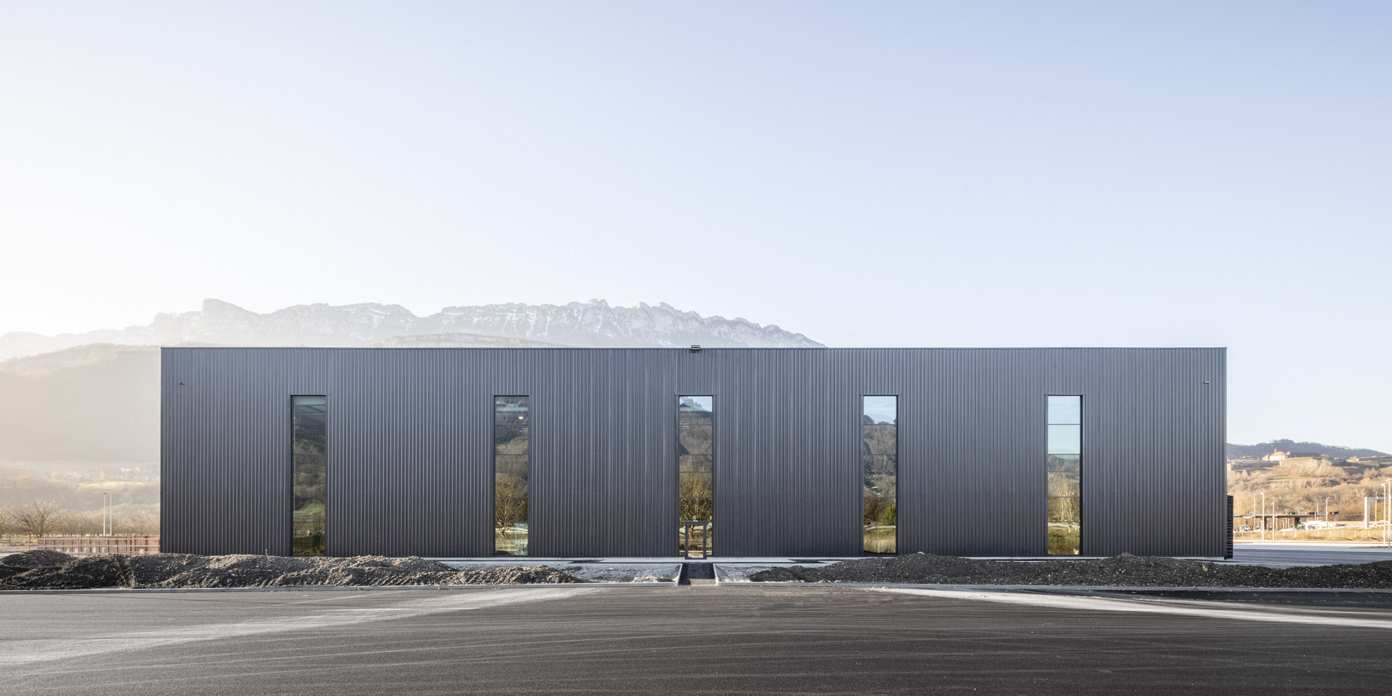 AFA Architecture // Centre de tri pour La Poste Au pied des montagnes, entre Grenoble et Chambéry, AFA Architectes ont conçu ce bâtiment fonctionnel et épuré. Photographies La Buissière PRÉCÉDENT SUIVANT
