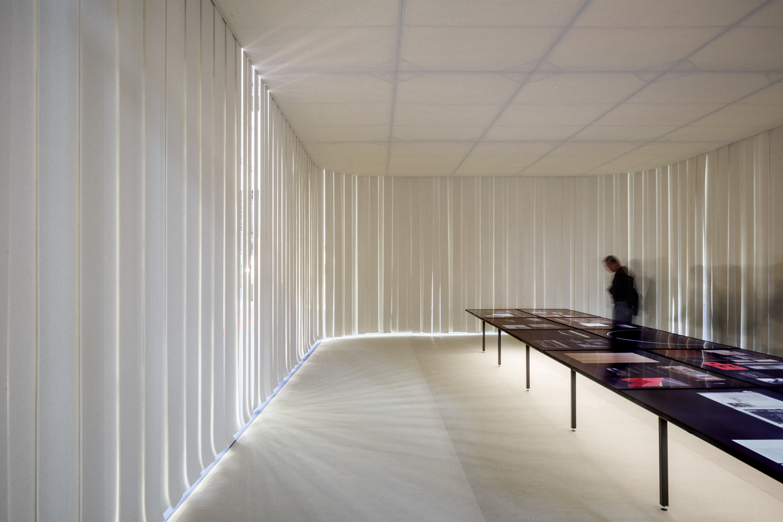 Franklin Azzi // Maison & Objet En 2022, Franklin Azzi a dessiné le Pavillon d’accueil du salon Maison & Objet (privilège réservé aux personnes nommées Designer de l’Année). Les parois en feutre apaisent l’espace, le rendant doux et calme. Photographies Paris, Île-de-France PRÉCÉDENT SUIVANT